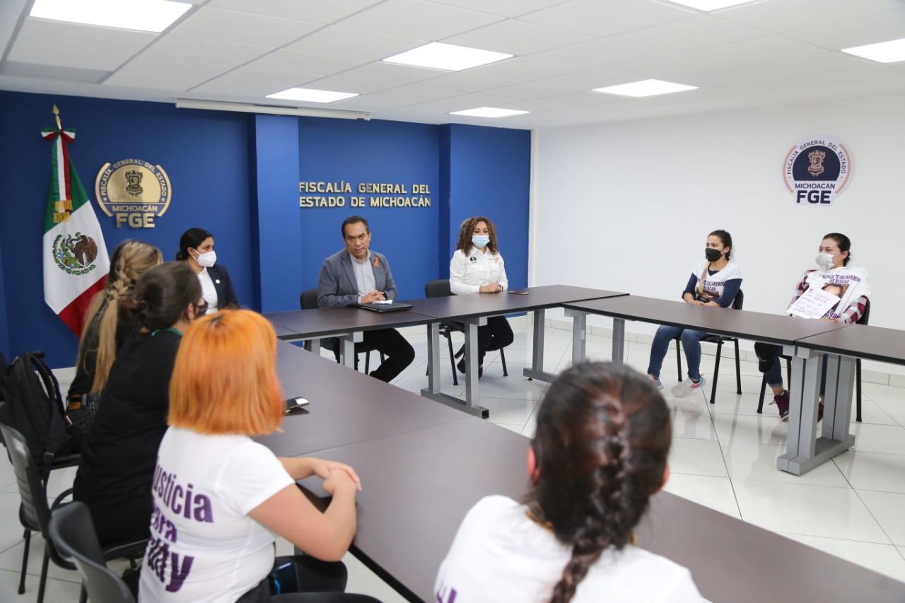 Al recibir al grupo de activistas que este día se manifestó en las instalaciones de la Fiscalía General del Estado de Michoacán (FGE) y luego de escuchar el interés de las feministas para conocer avances de varias carpetas de investigación que se han iniciado en esta capital, Adrián López Solís refrendó el compromiso con el que la institución ha actuado para responder con acciones puntuales en los delitos cometidos en agravio de la mujer.