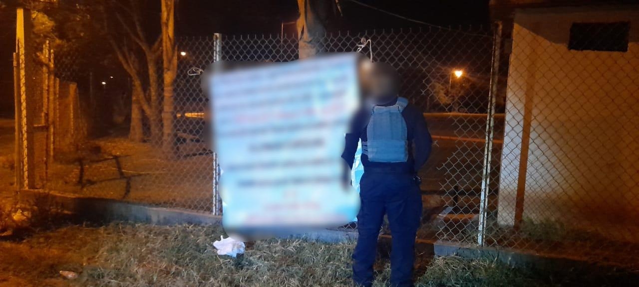 Se informó que los agentes de la Policía realizaban patrullajes operativos en la colonia Gobernadores, lugar donde realizaron el aseguramiento de José A., quien está aparentemente relacionado en la colocación de dos mantas con mensajes que incitaban a la comisión de hechos ilícitos.