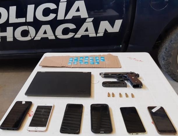 La labor operativa se registró en la comunidad de Aquiles Serdán, lugar donde los elementos de la Policía Michoacán realizaban trabajos de vigilancia, y sobre la calle Adolfo López Mateos, ubicaron a los ahora detenidos Luis B., Emanuel C., y Pablo G., a bordo de un vehículo de la marca Volkswagen color azul.