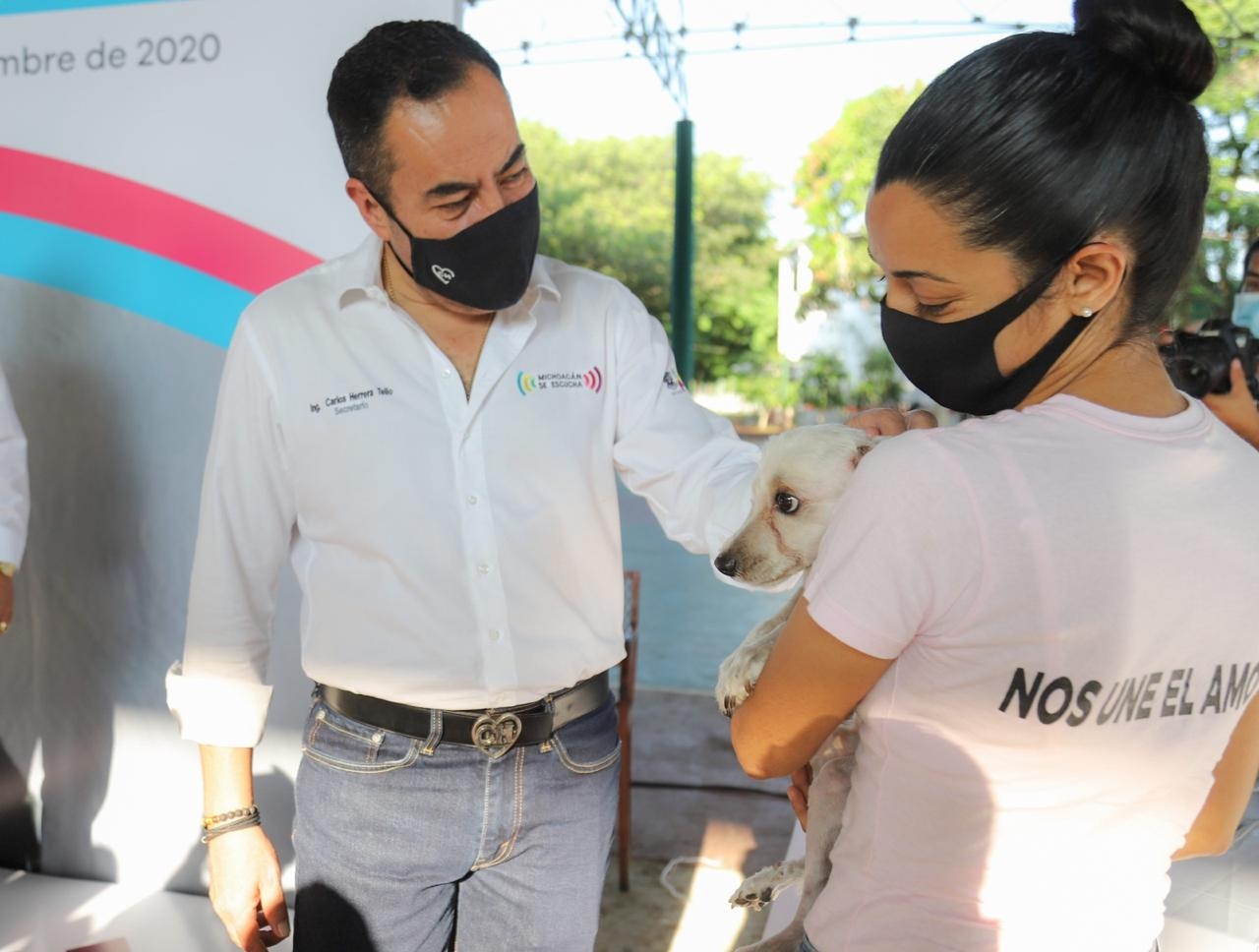 Apatzingán, Michoacán, a 23 de septiembre de 2020.- El secretario de Gobierno, Carlos Herrera Tello, encabezó el arranque de la Jornada Nacional de Vacunación Canina y Felina 2020, en donde aseguró que cualquier medida de prevención de enfermedades evitará, en estos momentos, el colapso del sector salud.