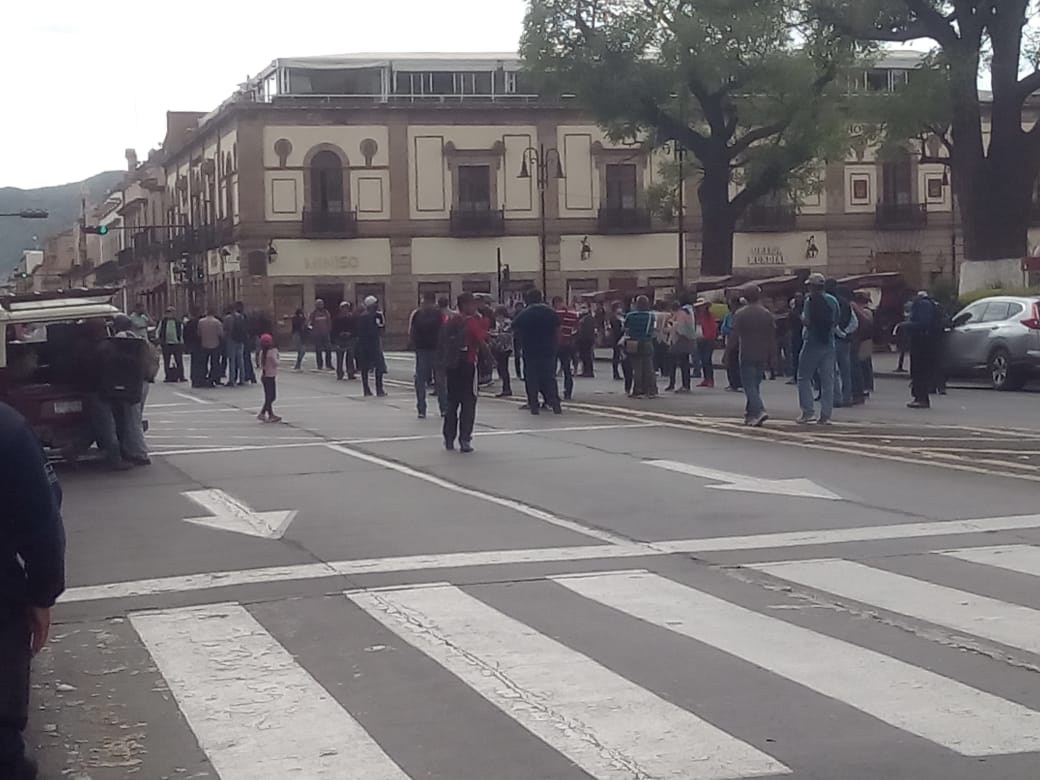 Los profesores y activistas bloquearon la avenida Madero, frente al Palacio de Gobierno, exigieron ser atendidos por personal del Gobierno de Michoacán.