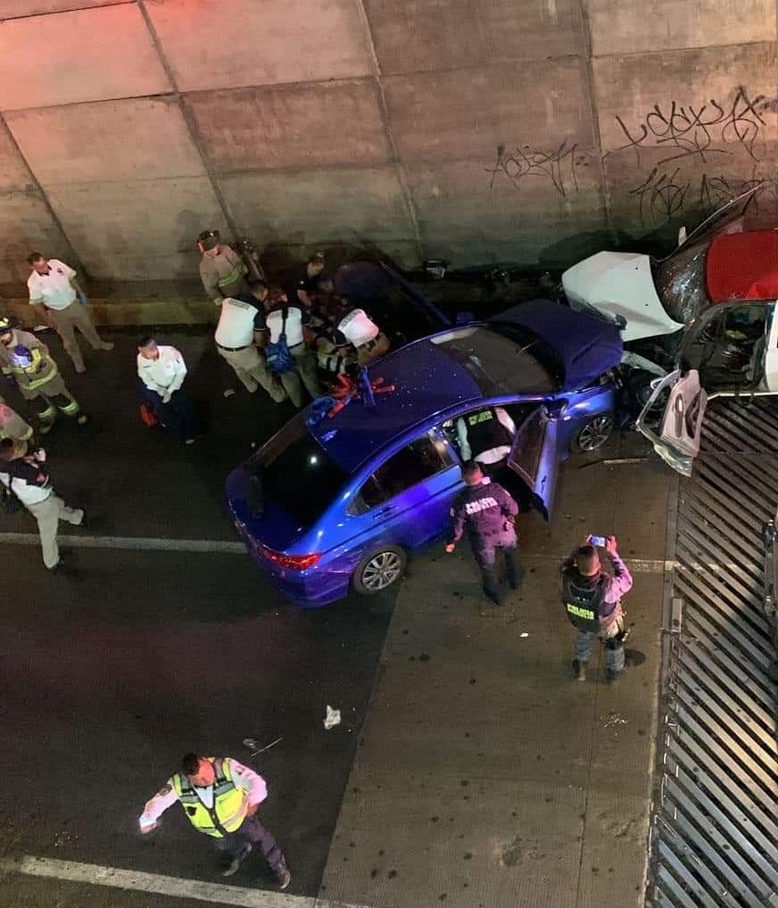Según el reporte de las autoridades, un vehículo marca Honda tipo Civic color azul que era conducido por una dama, brincó el camellón central y se impacto de frente contra un taxi que circulaba en sentido contrario.