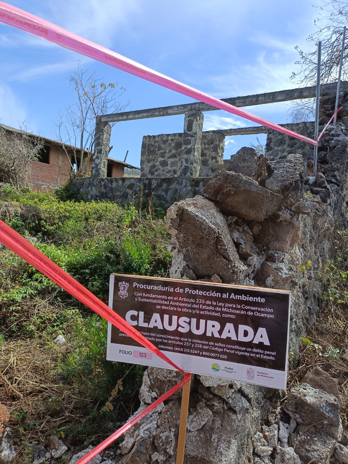 Morelia, Mich., 15 de enero de 2024.- La Procuraduría de Protección al Ambiente (Proam), que encabeza Arturo Chávez Carmona, clausuró obras encontradas dentro del polígono del Área Natural Protegida del Manantial de La Mintzita, en el municipio de Morelia.