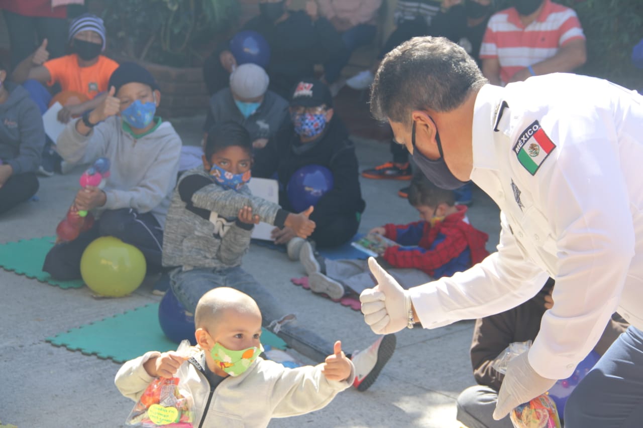 –Pelotas, muñecas, carritos y una variedad de juguetes, fueron entregados por personal de Dirección de Tránsito y Movilidad en la Casa Hogar Niños Morelia