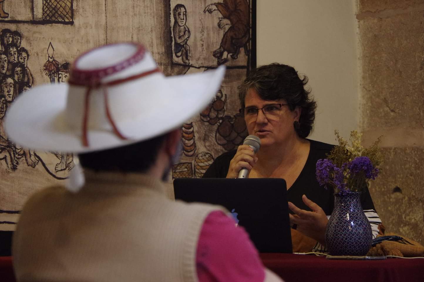 Eva Garrido, curadora y museógrafa, ofreció un análisis sobre la máscara como la huella de un fenómeno complejo, vinculado con los saberes tradicionales, la historia, valores estéticos, usos colectivos y dinámicas globales.