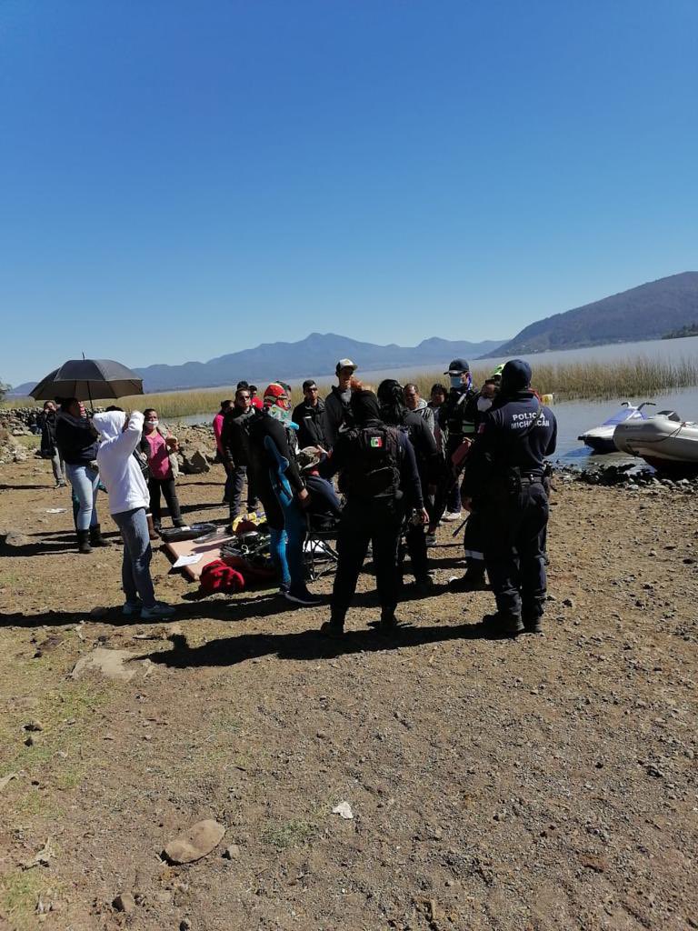 QUIROGA MICH., 15 de febrero.- La mañana de este lunes se reanudaron los trabajos de búsqueda de un sujeto y su hija de 6 años de edad que cayeron al lago de Pátzcuaro cuando paseaban en una moto acuática la tarde de este domingo.