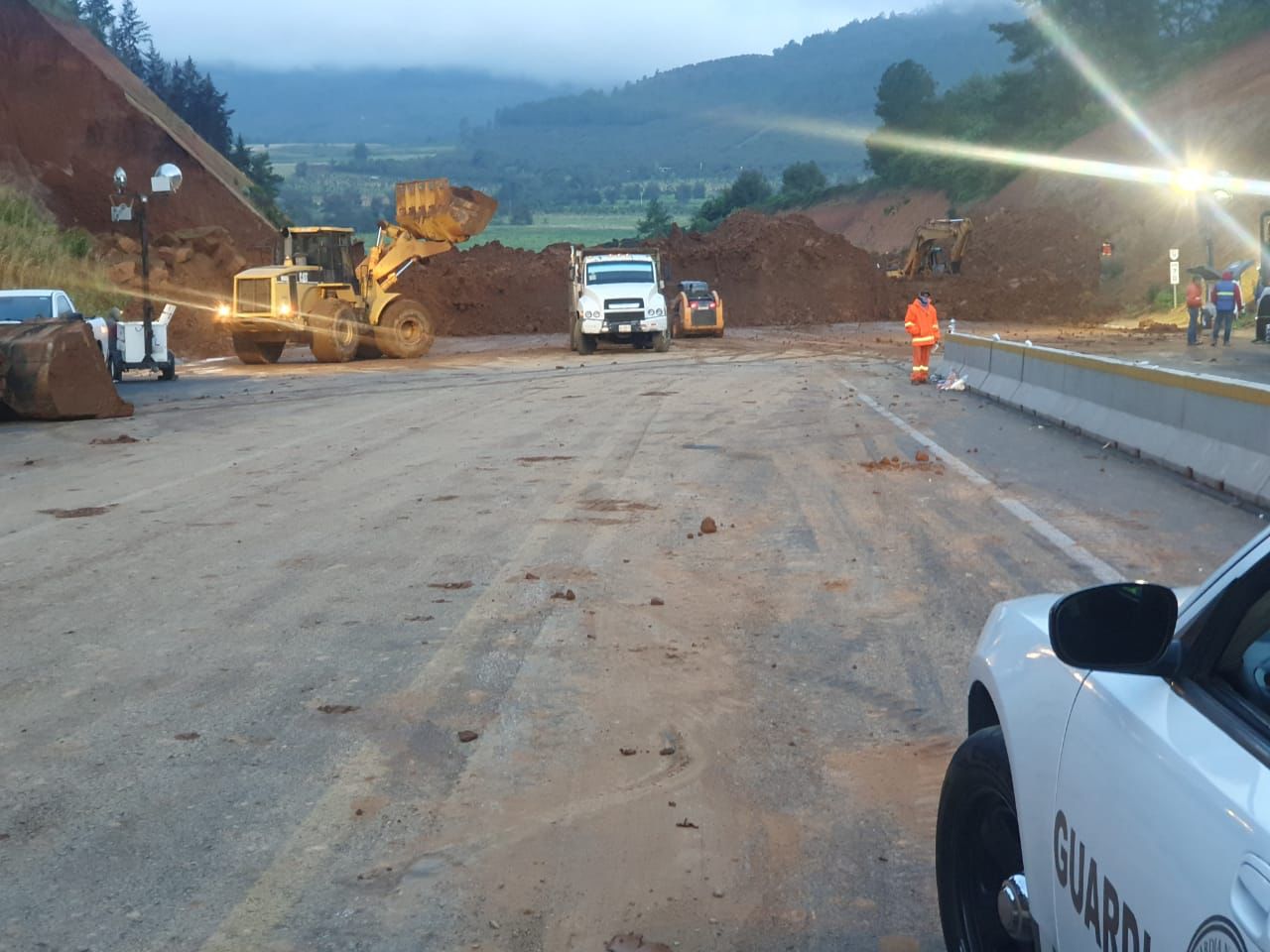 Pátzcuaro, Mich., 12 de septiembre de 2021.- Tras el derrumbe de talud la tarde de ayer 11 de septiembre en el kilómetro 73 de la autopista Siglo XXI, continúan la labores de limpieza, aproximadamente a las 13:00 horas se reanude el tráfico.