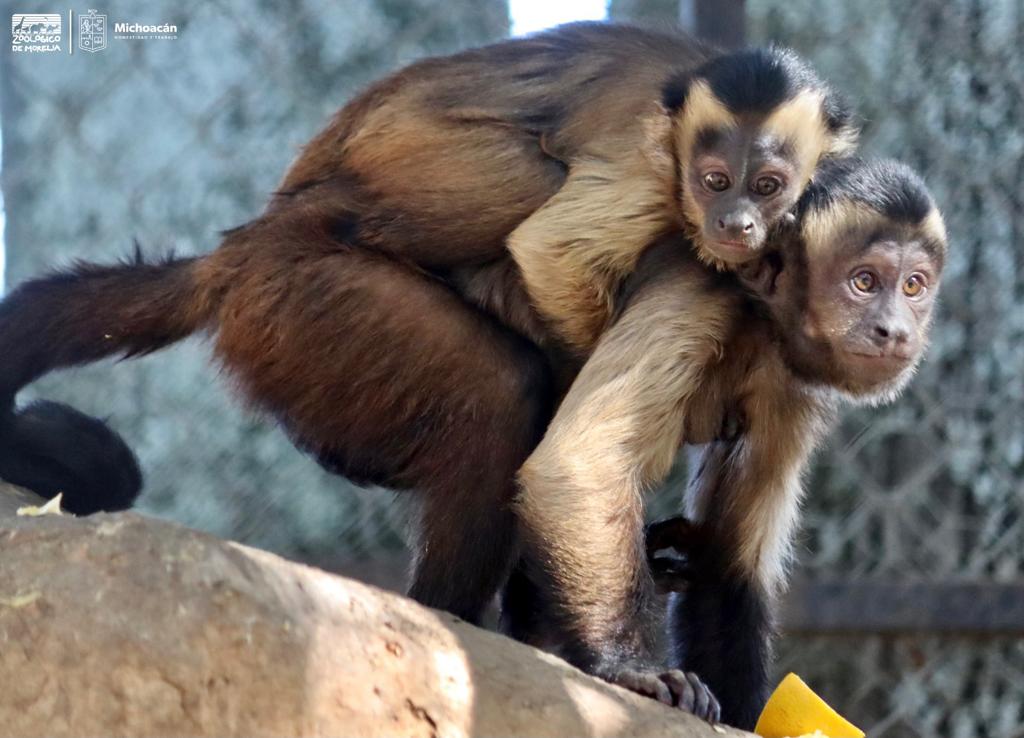 Morelia, Mich., 26 de marzo de 2023.- Hace poco más de un mes, nació un mono capuchino, con lo que la familia de estos primates del Parque Zoológico Benito Juárez, sigue creciendo, al contar ya con 11 de estos ejemplares.