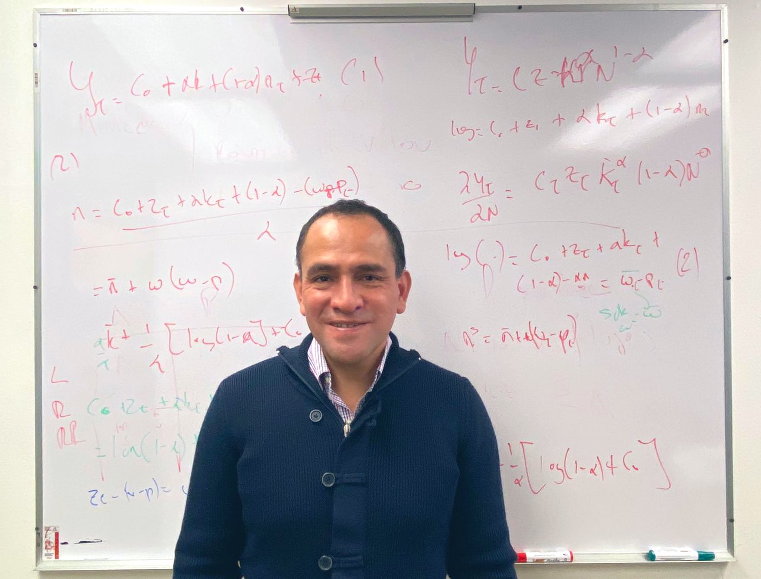 En varias fotografías en las que posa sonriente con un pizarrón al fondo, el ex secretario de Hacienda dijo que aunque su trabajo no le exige utilizar corbata, si le exige arrastrar el lápiz.