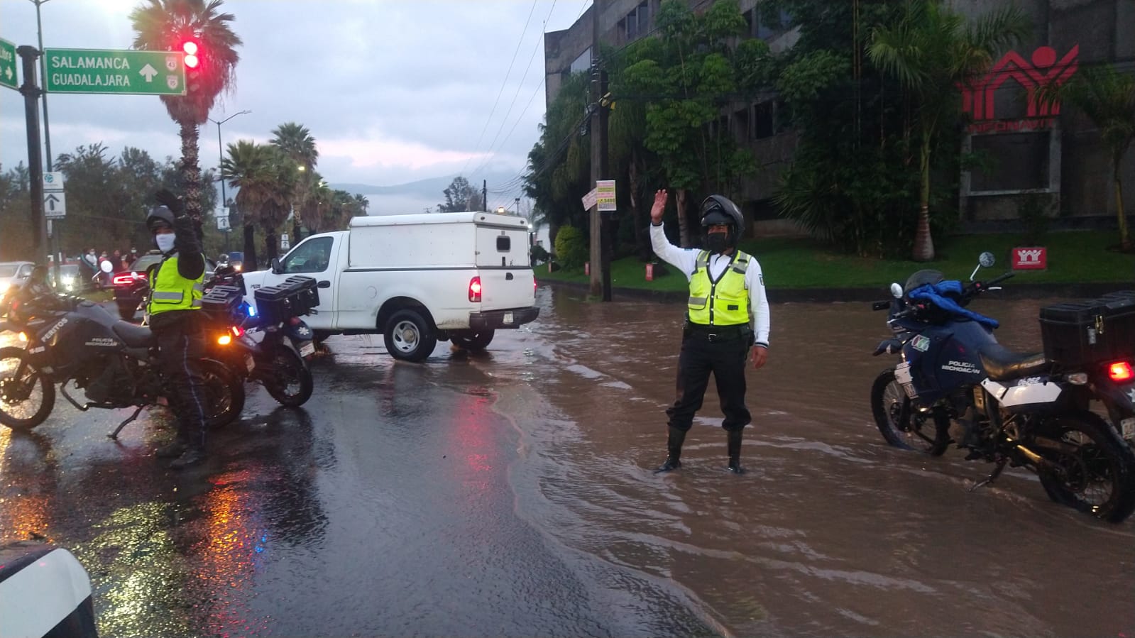 MORELIA MICH., 7 de octubre.-Después de la tormenta registrada este miércoles, se registraron inundaciones y encharcamientos en varios puntos de la ciudad y esta mañana personal de Tránsito y Movilidad del Estado habilitó un operativo para habilitar vías alternas en puntos estratégicos de Morelia.