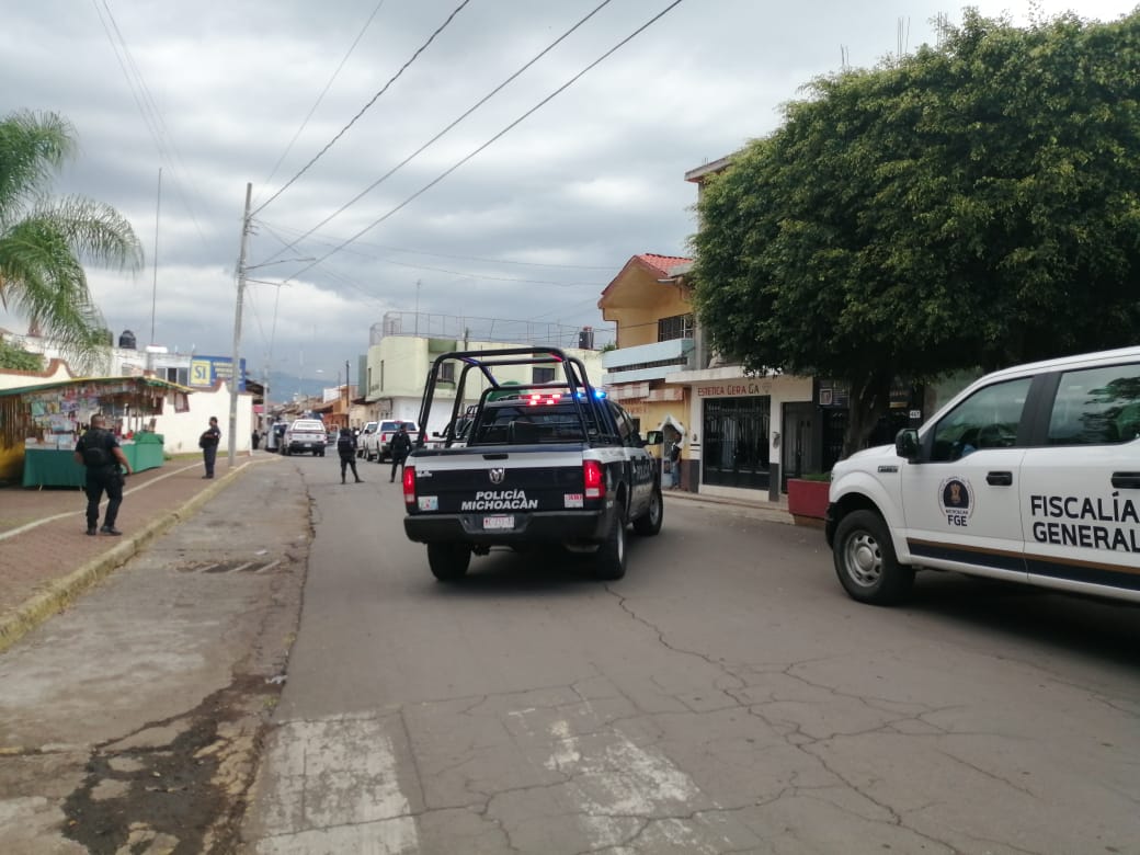 TANGANCICUARO, MICH. 12 DE AGOSTO.- Autoridades de los tres niveles de gobierno y del Ejército Mexicano se hicieron presentes en la zona centro de este municipio después de que sujetos a bordo de varios vehículos accionaron sus armas en contra de los uniformados de la Policía Municipal, quienes repelieron este ataque.