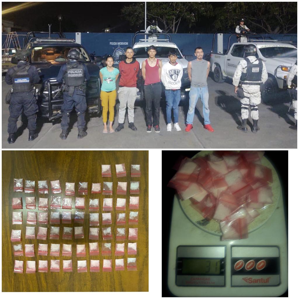 Trascendió que la detención de estos presuntos distribuidores de droga fue dentro del operativo implementado en este municipio y donde participa Policía Michoacán, Municipal y Guardia Nacional.
