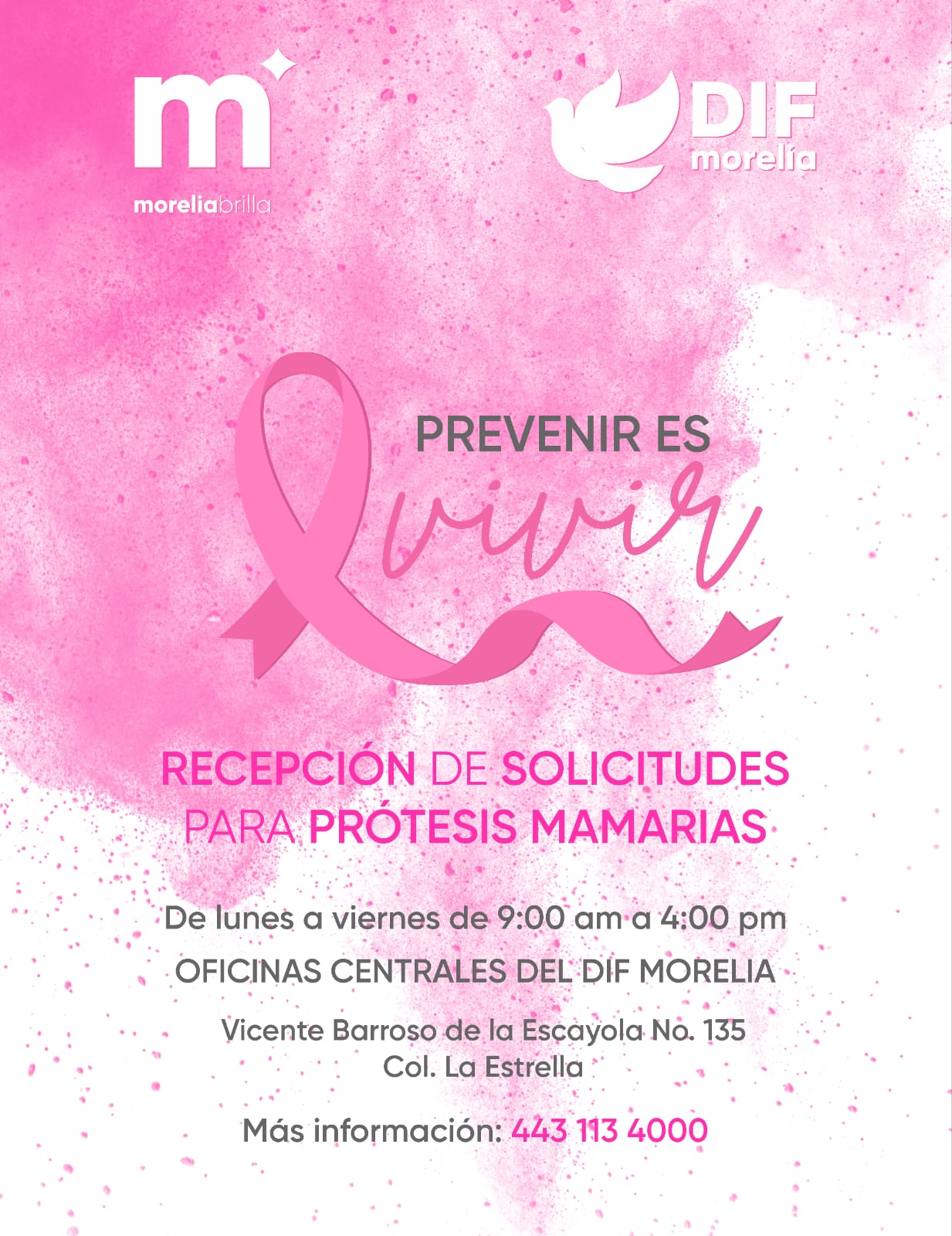 Para contribuir a esta causa, el DIF Morelia invita a la población en general participar en la carrera “Pinktate de Rosa” contra el cáncer de mama el próximo domingo 22 de octubre. El donativo de la inscripción se utilizará íntegramente para la adquisición de prótesis mamarias, por lo que las y los interesados pueden inscribirse en línea en https://bit.ly/PinktateDeRosa o, acudir a las oficinas ubicadas en Vicente Barroso de la Escayola #135, Col. La Estrella. Más información al 443 113 4000.
