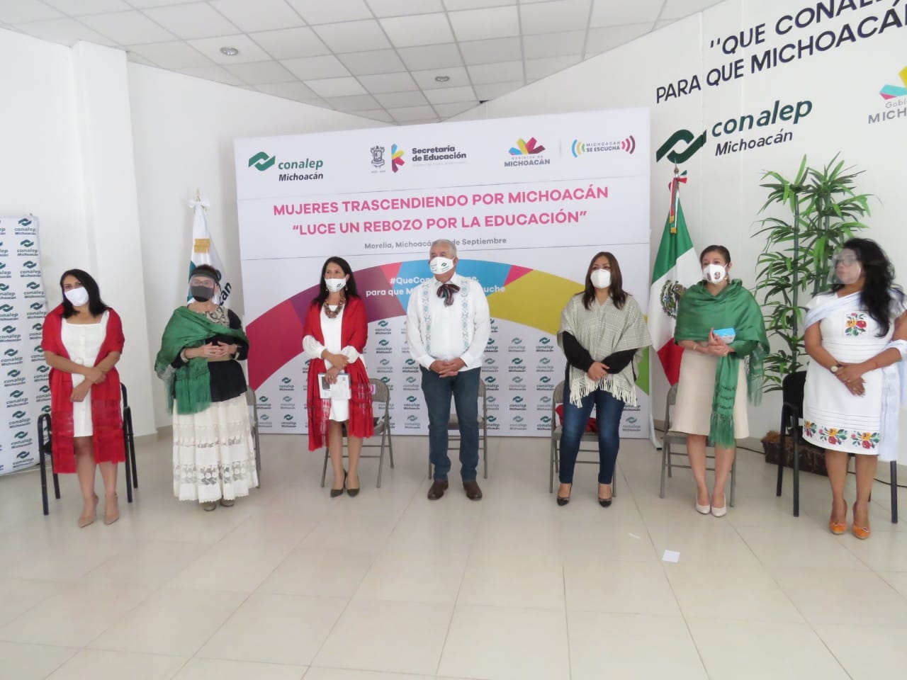 Morelia, Michoacán, a 15 de septiembre de 2020.- Con el objetivo de abonar a la educación de los estudiantes del Conalep Michoacán, para que continúen con sus estudios, el subsistema a través del grupo colegiado de Mujeres Trascendiendo por Michoacán, y en el marco de las fiestas patrias, puso en marcha el programa “Luce un rebozo por la Educación”.