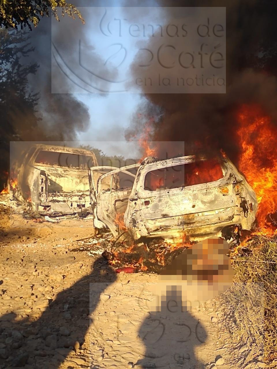 En algunas gráficas que circulan en redes sociales, se muestra el grado de los ataques, en donde incluso se ve a un hombre tirado al lado de una camioneta en llamas y que, al parecer también fue alcanzado por el fuego.
