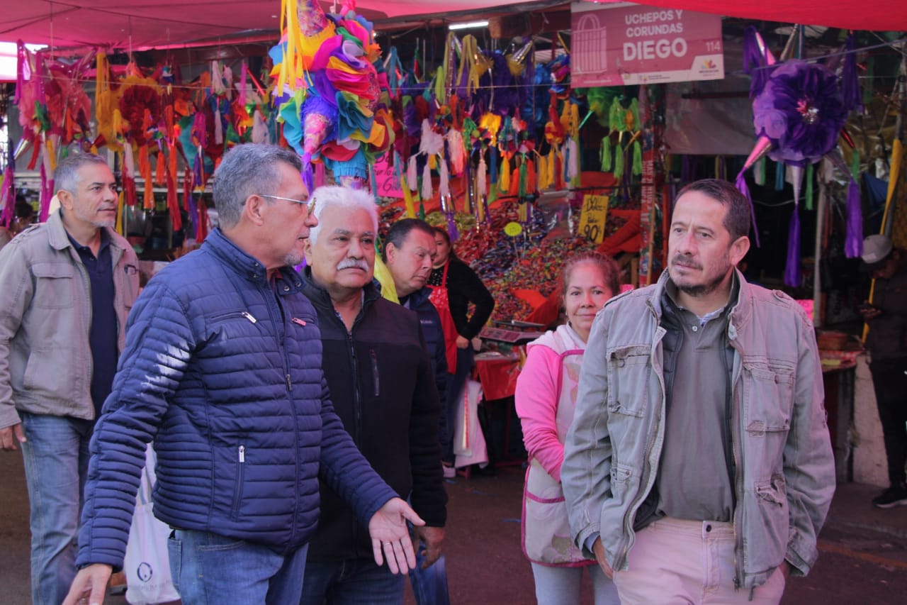 Morelia, Michoacán, 31 de diciembre del 2022.- Para escuchar y dar seguimiento a las necesidades de mejora de la infraestructura y los servicios del mercado de la antigua feria, el secretario de Desarrollo Económico Claudio Méndez Fernández, realizó este sábado un recorrido por las instalaciones de ese centro de abasto.