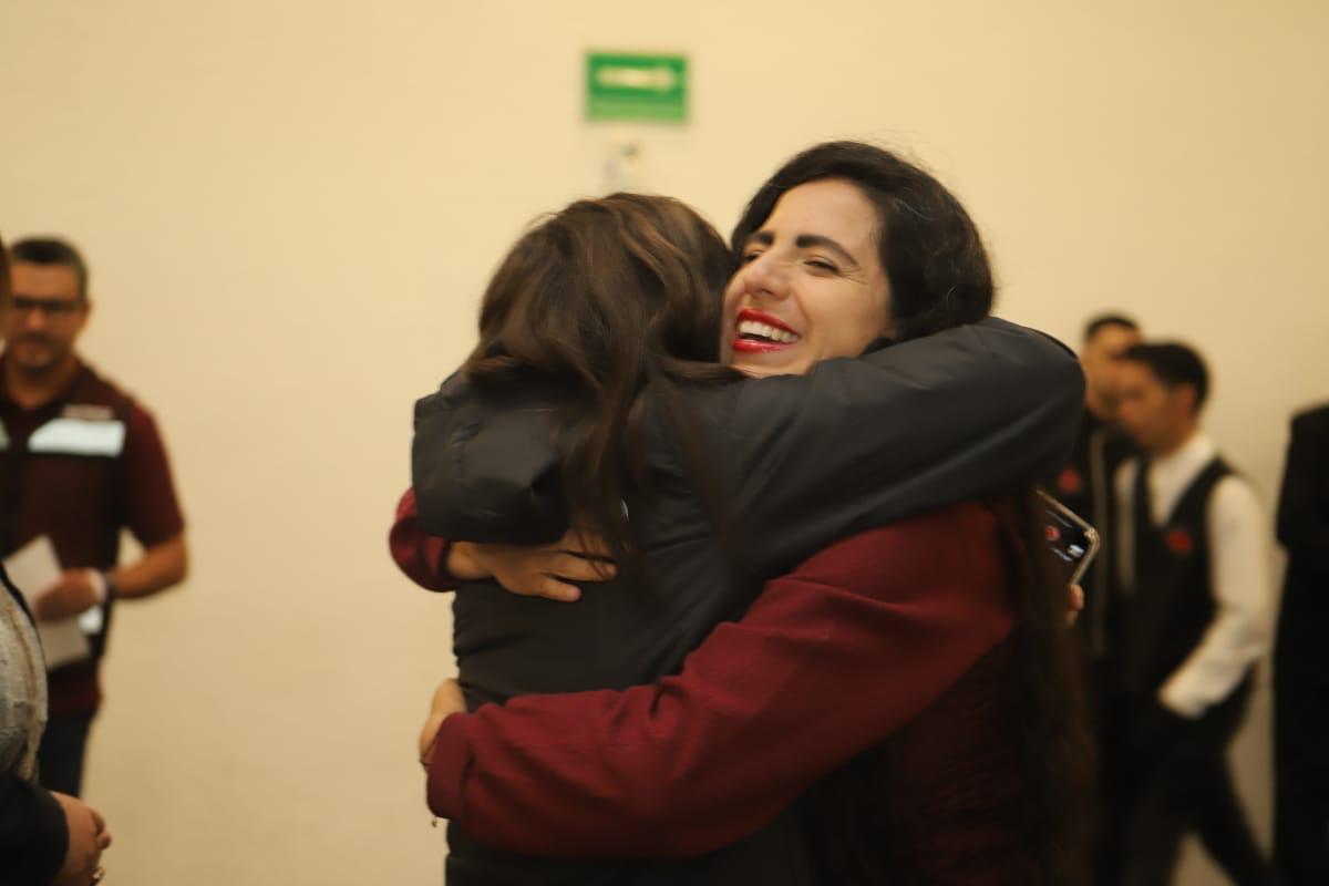 Morelia, Mich., 24 de noviembre de 2023.- Entre porras de apoyo, la precandidata al Senado de la República, Giulianna Bugarini se reunió con mujeres líderes de Morelia, a quienes reiteró que está lista para la encuesta, que se espera se realice el próximo 3 de diciembre, en la que se elegirá a la abanderada de Morena rumbo a la Cámara Alta del país.