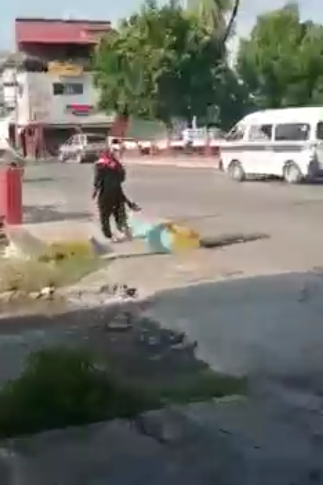 Ante la mirada de las personas que caminaban esta mañana por la avenida principal de Apatzingán, Constitución de 1814, el hombre salió corriendo hacia el norte de la ciudad, portando el elegante traje.