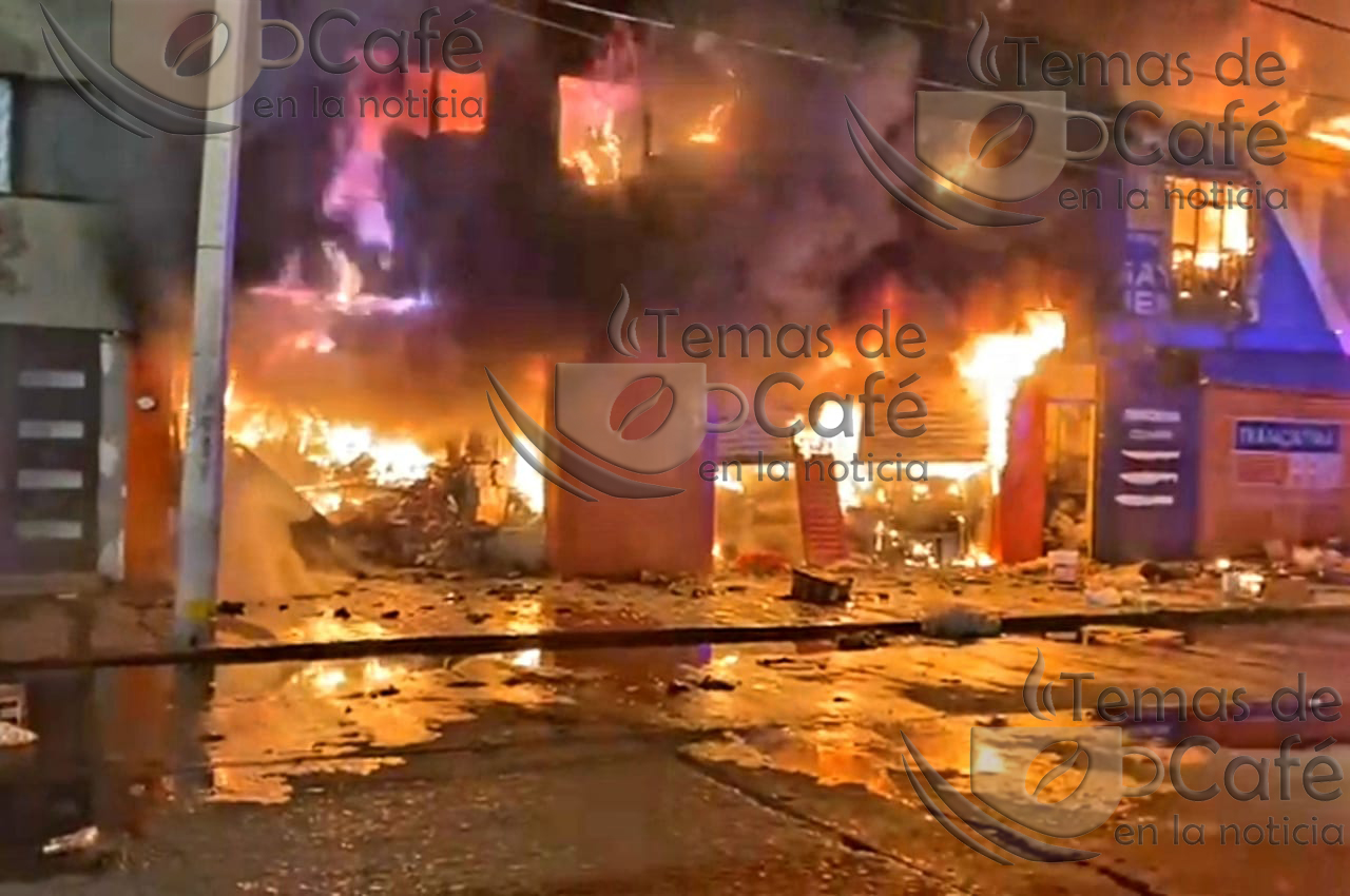 ZAMORA, MICH, a 17 de Marzo.- El incendio de tres locales comerciales en el primer cuadro de esta ciudad, dejó pérdidas millonarias y la movilización de cuerpos de Bonveros de tres municipios y todos los cuerpos de emergencia de esta ciudad.