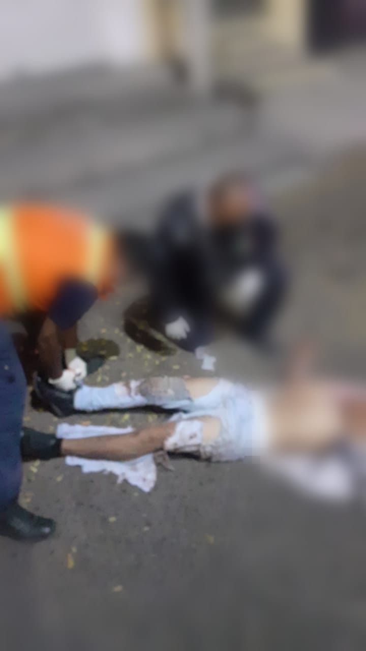 Cuando llegaron elementos de la Policía Morelia y paramédicos, atendieron a Giovany T., de 19 años de edad, quien sufrió varias heridas de bala a manos de sus amigos con quien recién habían salido de una fiesta.