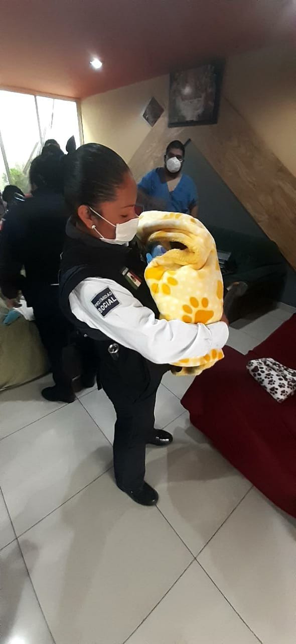 MORELIA, MICH., 21 DE AGOSTO DE 2020.-Esta mañana una joven mujer de 21 años dio a luz a un bebé con la asistencia de elementos de la Policía Morelia, la dama entró en trabajo de parto repentinamente y no alcanzó a ser llevada a un hospital.