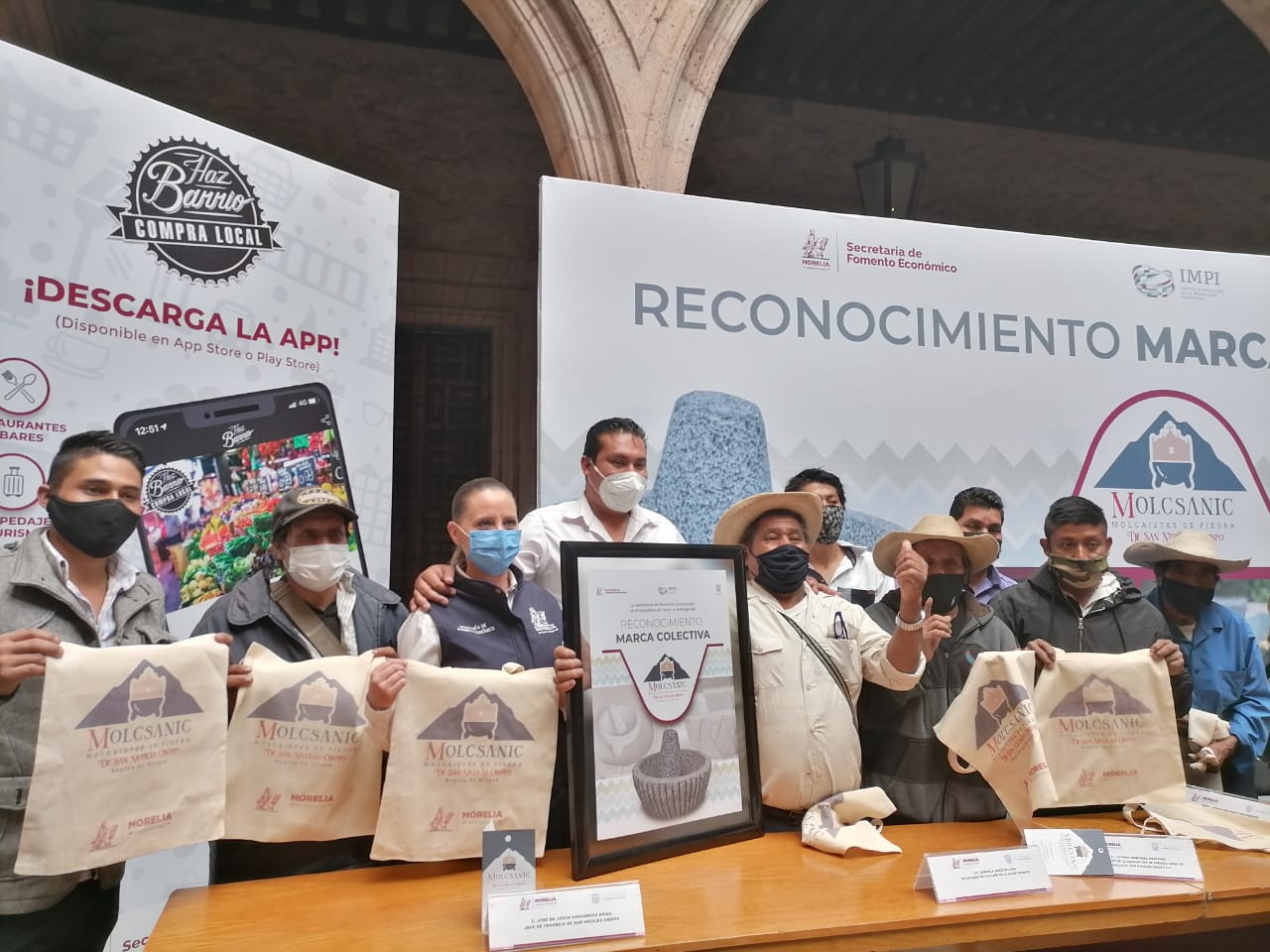 MORELIA, MICH., 5 DE MARZO DE 2021.- El ayuntamiento de Morelia, hizo entrega del reconocimiento de marca colectiva a la marca MOLCSANIC, con la intensión de darle el reconocimiento a los productos que se realizan en la capital michoacana.