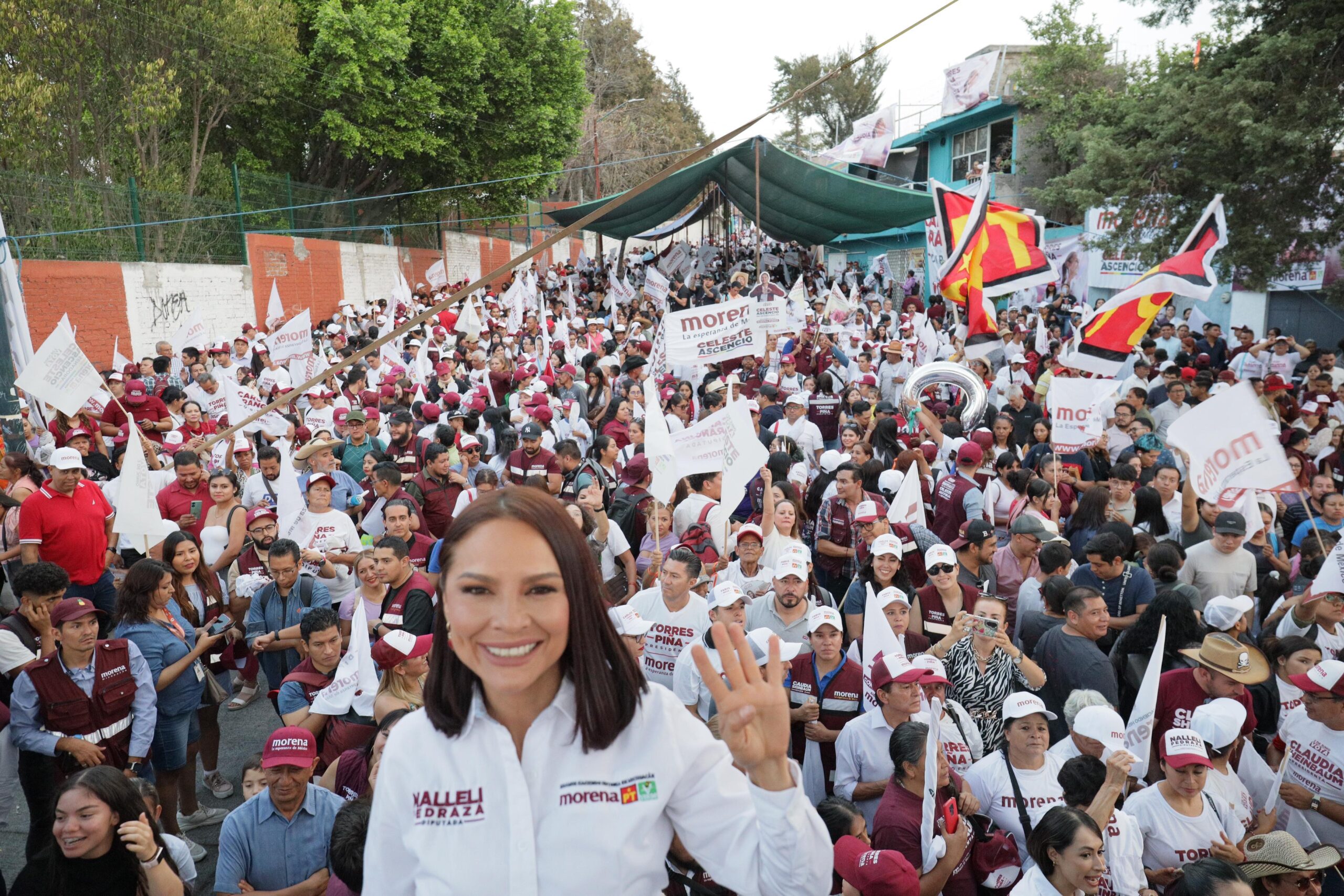 Ante una gran fiesta, algarabía y porras, Nalleli Pedraza agradeció con aplausos a todos los morelianos y morelianas que durante casi 45 días de campaña le demostraron su respaldo abriéndole las puertas de sus casas y escuchando el proyecto de la Cuarta Transformación que estará encabezando desde la presidencia de la República, la primera mujer, Claudia Sheinbaum.