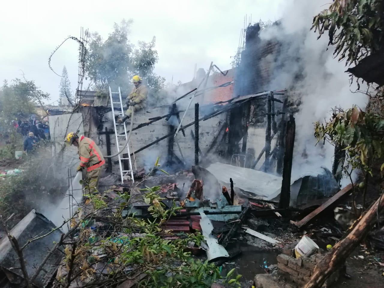 Los hechos se registraron alrededor de las 6:30 horas de este martes, vecinos de la calle Melchor Ocampo solicitaron la presencia de Bomberos Voluntarios cuando una vivienda de madera y láminas se encontraba envuelta en llamas.