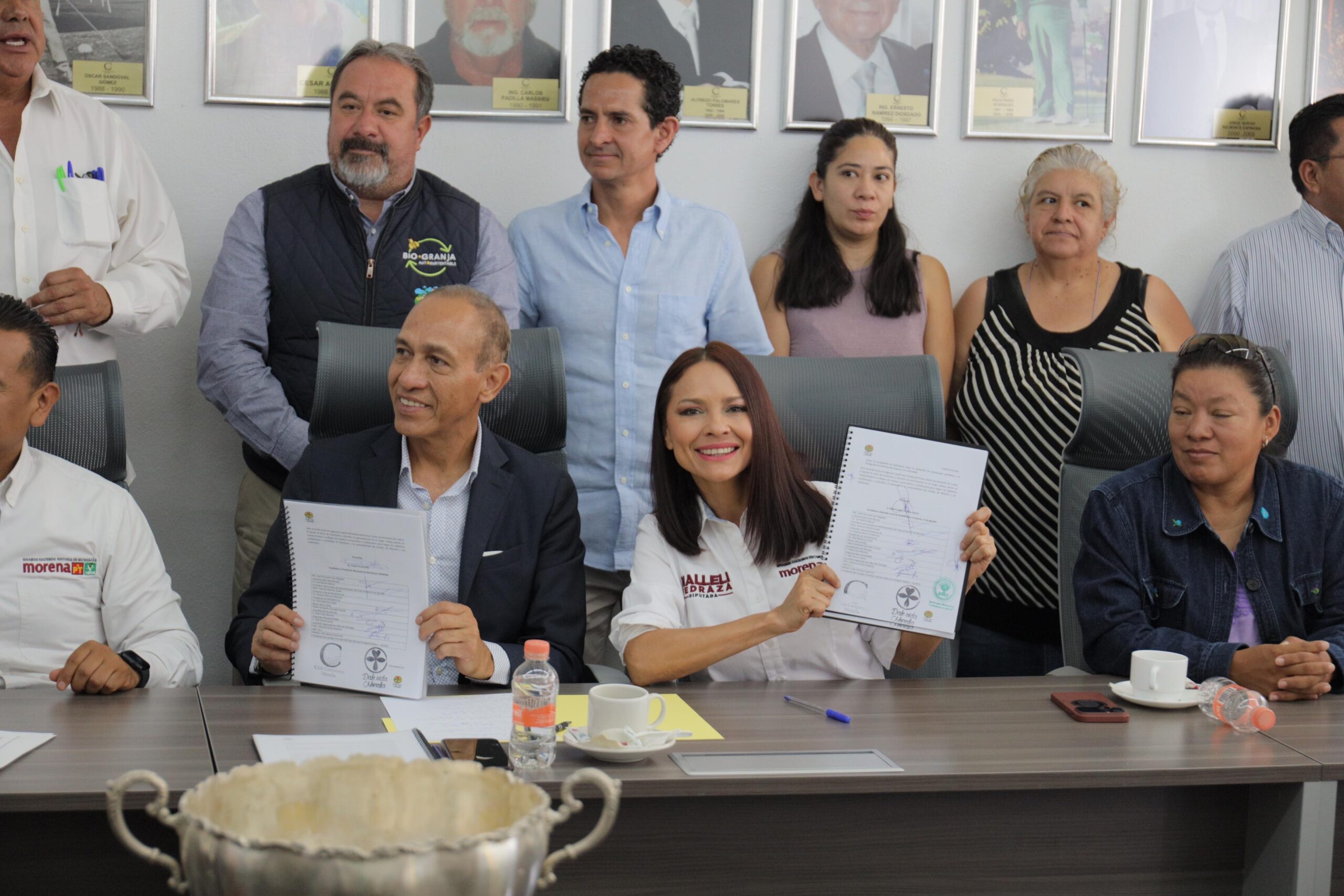 El documento de compromisos, también fue firmado por Luis Merino Blanco, del Consejo de Administración del Club Campestre de Morelia; Yasmina Ramírez Ayala, de Fomento Cultural Mundinovi; Gustavo Moreno Martínez, de SEPAMICH; Raúl Martínez Ríos de la UVAQ y el Padre Humberto González Correa, de la Arquidiócesis de Morelia; además de Pedro Díaz Moreno de Biogranja Autosustentable; Odín García Juárez de Sociedad Organizada Villas del Pedregal; Minerva Zurita Calderón de ANP ITA 7 y Julio Santoyo Guerrero del área natural protegida Madero-Acuitzio.