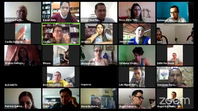 La directora general del IMCED, Cecilia Izarraraz Gutiérrez, en su intervención en la sesión virtual, subrayó que se ha transitado desde la parte tradicional de la educación, pero es el momento histórico de replantear la práctica pedagógica y proponer estrategias de recuperación para reconocernos como seres humanos integrales y no fragmentados.