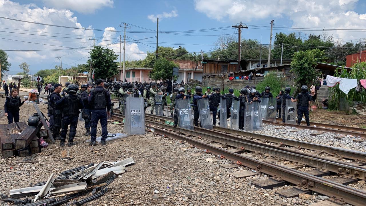 Por segundo día consecutivo elementos de la Guardia Nacional (GN) con el apoyo de elementos de la Policía Michoacán, desalojaron a normalistas y profesores radicales de la Coordinadora Nacional de Trabajadores de la Educación (CNTE) que insisten en bloquear las vías de ferrocarril en varios municipios del estado, a manera de protesta ante la falta de supuestos pagos que les adeuda el gobierno del estado y la entrega de plazas automáticas para los egresados de las escuelas normales.