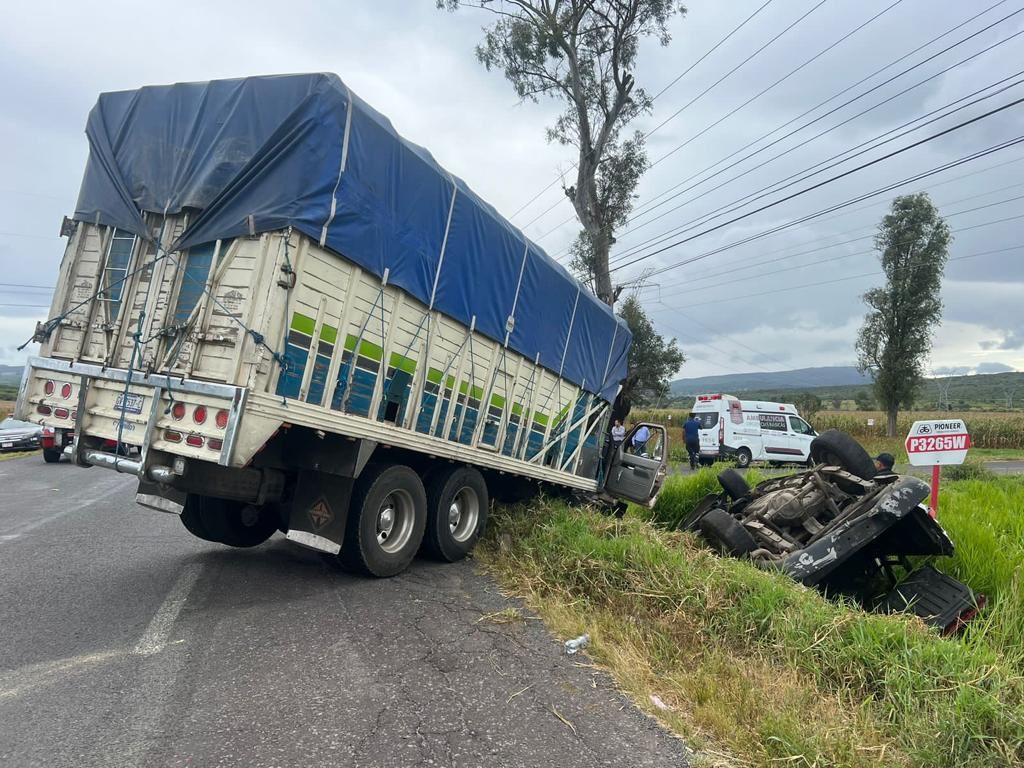 El conductor del camión se dio a la fuga y dejo abandonada su unidad, el percance se registró la tarde de ayer sobre la carretera Zacapu-Villachuato a la altura del crucero de la comunidad Pomácuaro, cuando los agentes se desplazaban en una patrulla de la Guardia Civil, misma que volcó debido al impacto.