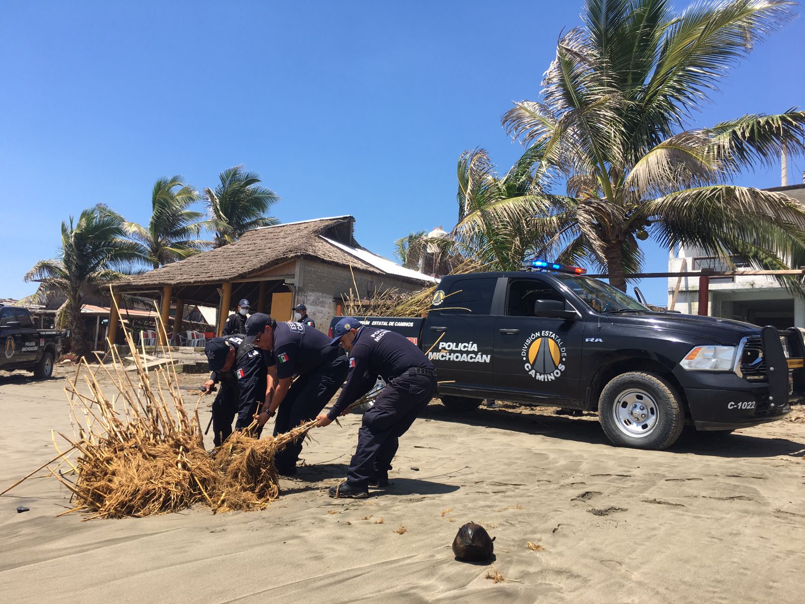 Se reveló que los grupos de prestadores de servicios en la costa michoacana iniciaron los trabajos de reconstrucción de sus enrramadas y más de 50 elementos de la Policía Michoacán, de la sección Caminos, de manera voluntaria se sumaron a los trabajos de limpieza.