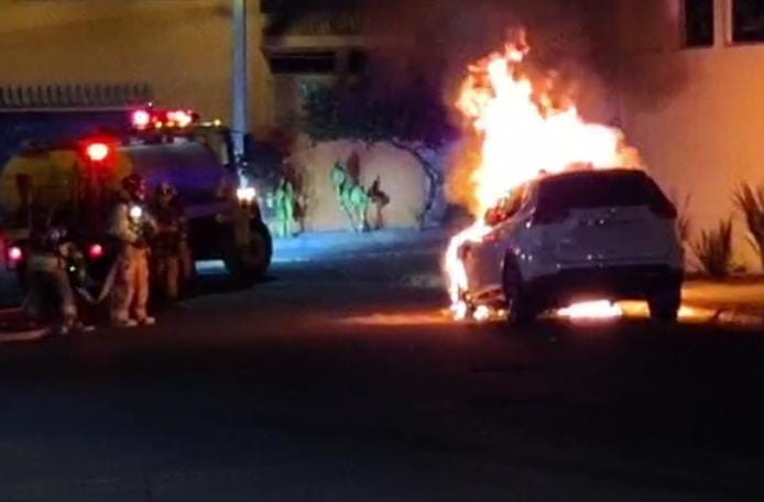 MORELIA MICH., 12 de abril.- A consecuencia de una aparente falle mecánica, una camioneta se incendio la noche de este lunes en el acceso a la colonia Mirador del Punhuato.