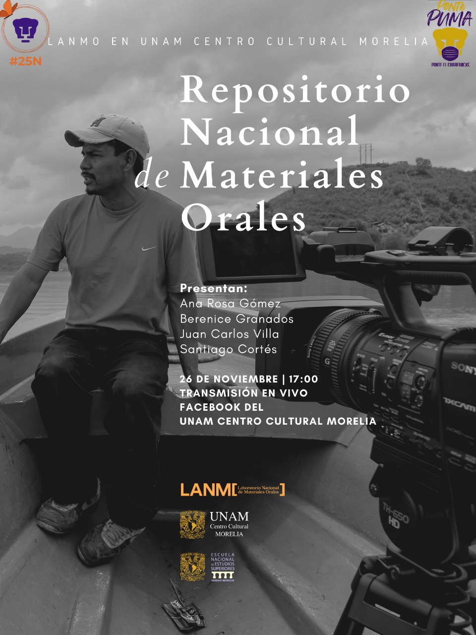 Morelia, Michoacán, a 24 de octubre de 2020.- El Laboratorio Nacional de Materiales Orales (LANMO) de la UNAM, presentará al público en general el Repositorio de Materiales Orales, este jueves 26 de noviembre a las 17:00 horas, a través de sus redes sociales.