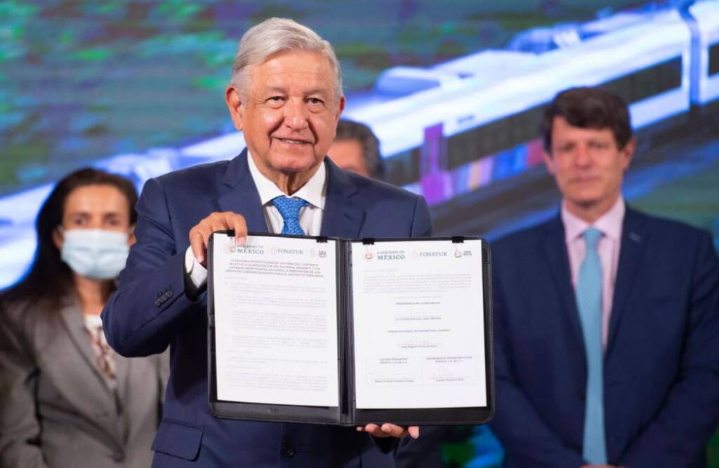 El presidente Andrés Manuel López Obrador encabezó la firma del contrato para la adquisición y construcción de carros del Tren Maya.
