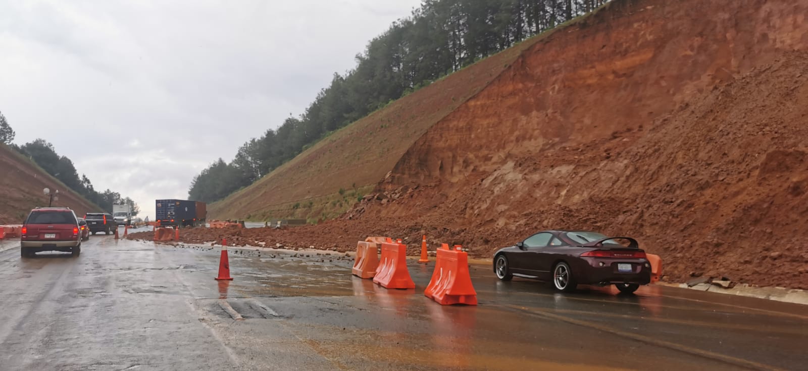 PÁTZCUARO MICH., 24 de septiembre.- De nueva cuenta parte de un talud de tierra en la Autopista Siglo XXI, se desgajo la tarde de este viernes, una parte de la carretera fue cerrada.