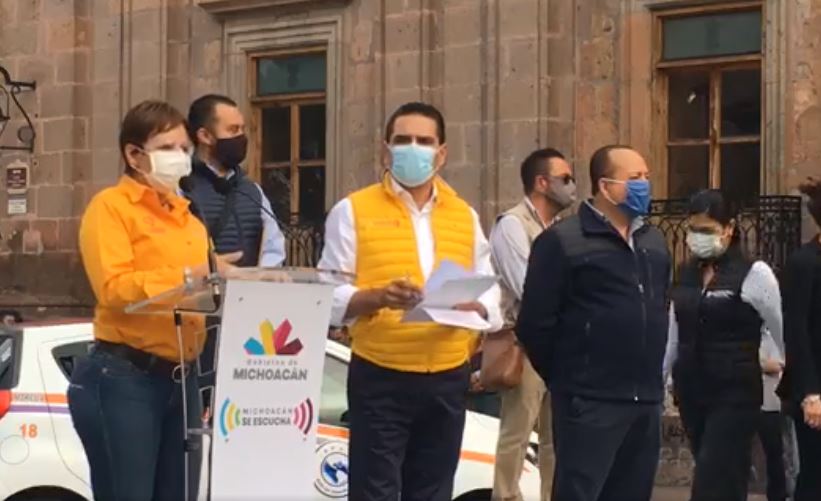 MORELIA, MICH. 5 DE AGOSTO DE 2020.- El gobernador del estado, Silvano Aureoles Conejo en coordinación con la Secretaria de Salud del estado de Michoacán (SSM) entregó cubrebocas y gel antibacterial a los operadores del transporte público de la ciudad con el objetivo de tratar de cortar la cadena de contagios de COVID-19.