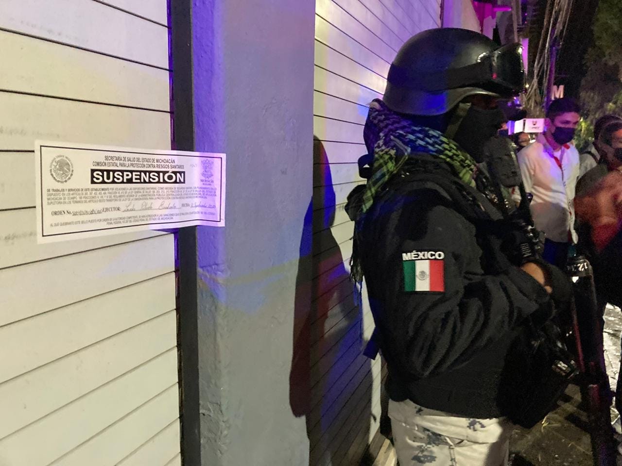 El día de ayer, 15 de septiembre, a través de la Comisión Estatal de Protección contra Riesgos Sanitarios (COEPRIS), se suspendieron nueve establecimientos que no cumplían con las medidas sanitarias, cinco en Apatzingán, dos en Múgica y dos más durante operativo nocturno en Morelia.