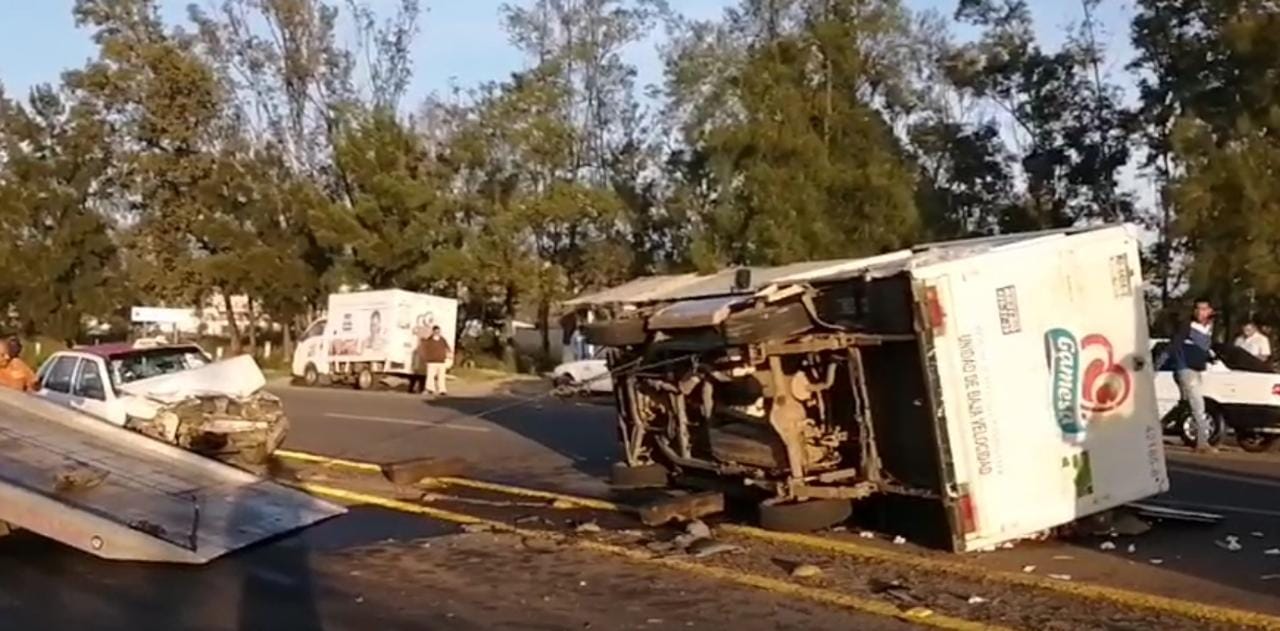 El accidente ocurrió la mañana de este jueves cuando la camioneta repartidora intentó incorporarse a la carretera, pero fue impactada en un costado por el vehículo compacto marca Volkswagen con rótulos de taxi Morelia.