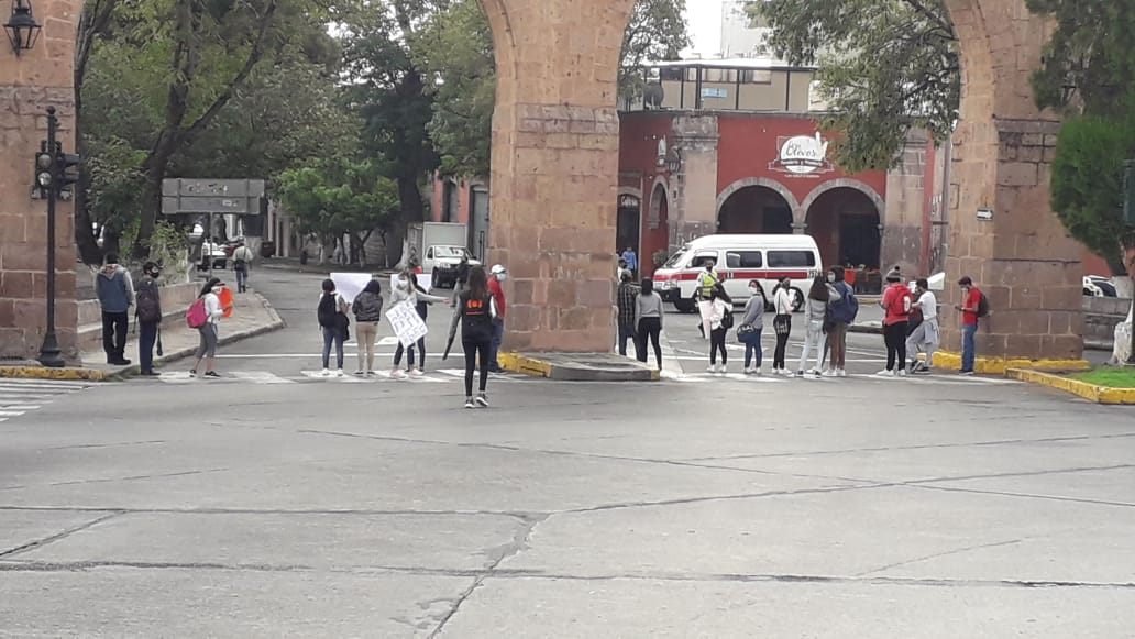 MORELIA, MICH. 5 DE AGOSTO DE 2020.- Un grupo de aspirantes a las normales del estado y supuestos padres de familia, se manifestaron en la avenida Madero frente al jardín Villalongín, ellos argumentan que hubo irregularidades en el proceso de admisión.