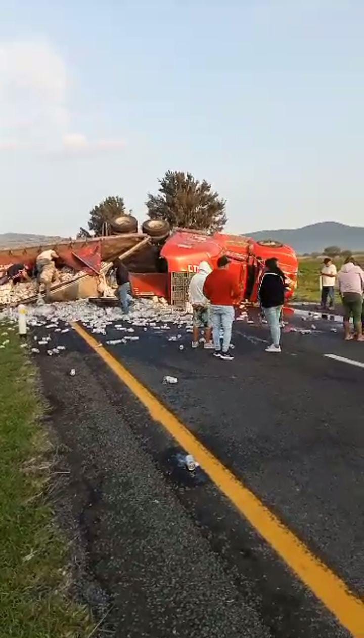 Después del accidente automovilistas que pasaban por el lugar aprovecharon la tragedia para robar paquetes de cerveza, ante la presencia de los elementos de la Guardia Nacional.
