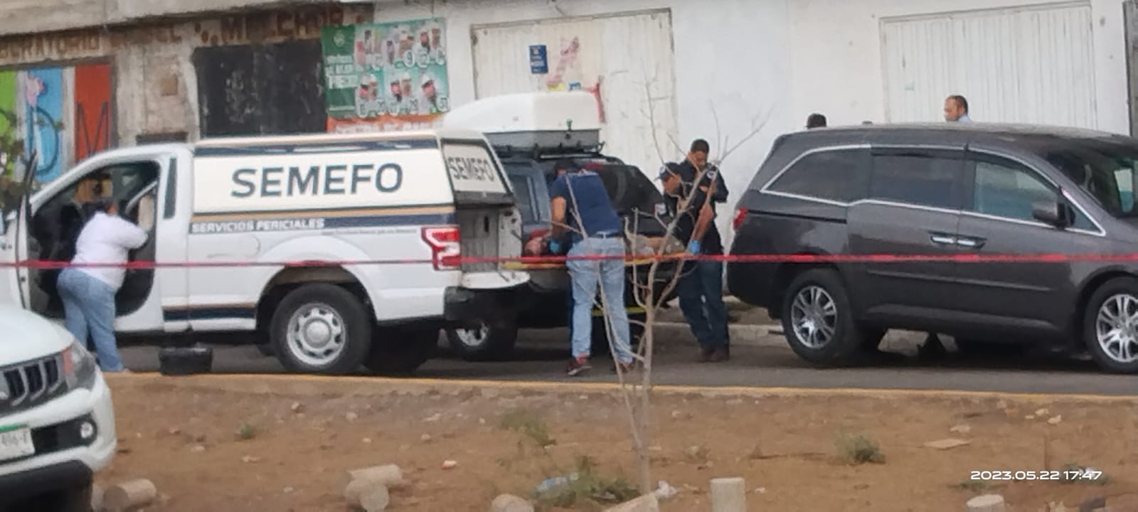 A un costado del cadáver fueron localizados cartuchos percutidos calibre. 40 milímetros y una camioneta Honda Odisey color gris con placas PLT-9313 de Michoacán, misma que fue asegurada por la Fiscalía Regional de Zamora.