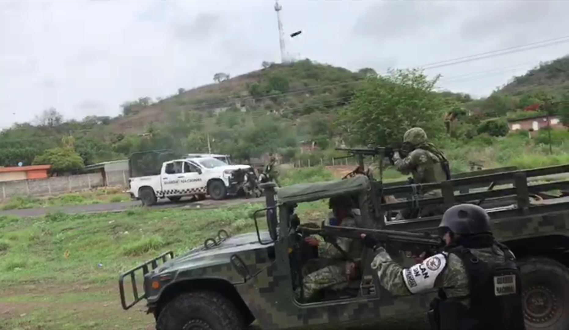 AGUILILLA MICH., 16 de julio. – Después de varias horas de enfrentamientos entre elementos de la Guardia Nacional y militares contra presuntos miembros de una célula delictiva, trascendió de manera extraoficial que ya suman por los menos cinco civiles muertos y ocho lesionados, entre estos tres uniformados.
