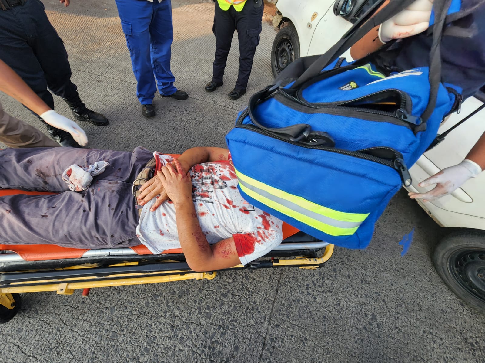 Al lugar llegaron los elementos de Tránsito y Vialidad Municipal, quienes solicitaron una ambulancia de Rescate y Salvamiento para atender al lesionado, quien presenta heridas cortantes en el rostro.